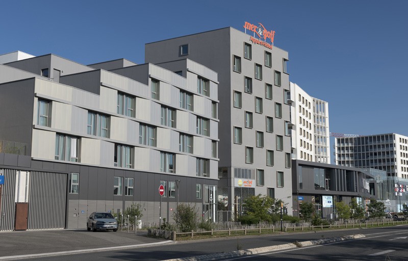 L’Appart-Hôtel Mer & Golf City est situé en plein cœur du nouvel éco-quartier de « Bordeaux Ginko ». Il se trouve ainsi à proximité immédiate du Parc des Expositions, du Palais des Congrès, du Stade Matmut Atlantique et du Lac de Bordeaux. Les jardins collectifs, les allées piétonnes et commerçantes, le lac et les canaux aménagés contribuent à une atmosphère à la fois urbaine et nature.